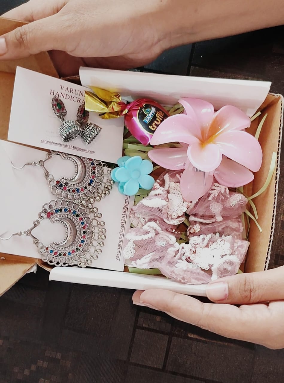 Surprise your loved ones with this beautiful Jewellery & Accessories Gift Combo Box from Varuna Handicrafts, thoughtfully curated to bring joy and style in one package. This combo is perfect for birthdays, festivals, return gifts, or just to make someone feel special.